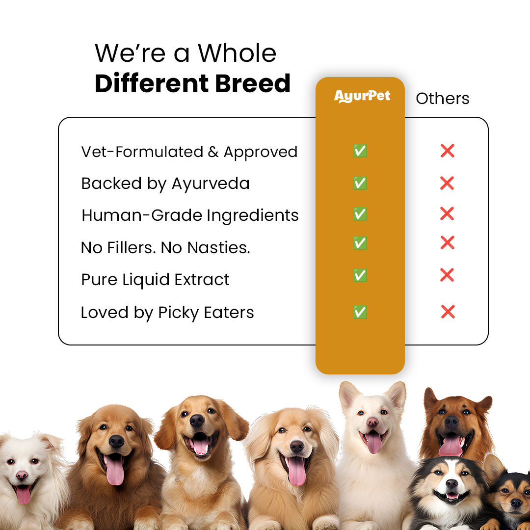 Every product is crafted with intention, approved by vets, and loved by pets. And with our Buy1Help1 mission, your purchase helps a dog without a home feel a little more loved too. AyurPet isn’t just a brand — it’s a heartfelt promise to pets everywhere.